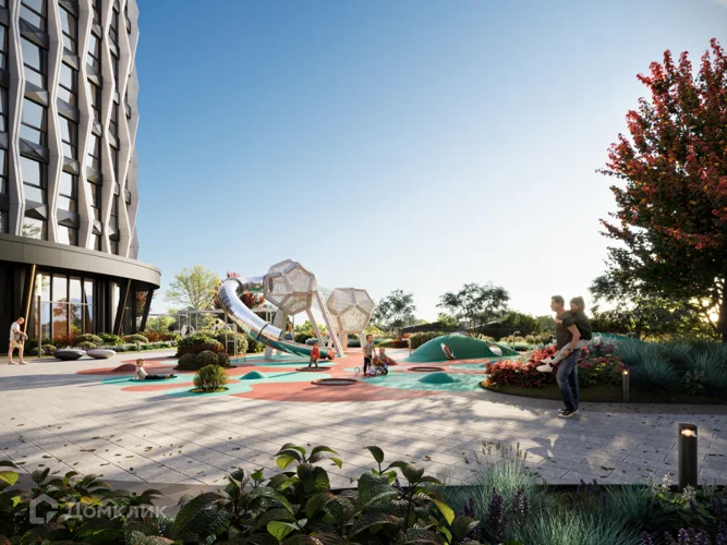 Дизайн игровых площадок вдохновлен небесными телами. Геопластика воссоздает эффект внеземного рельефа и передает атмосферу космического пространства.