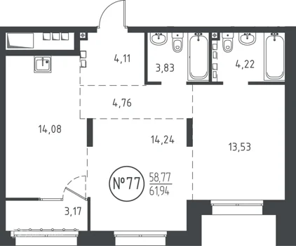 shell@core, white box, ремонт с дизайном от Застройщика.