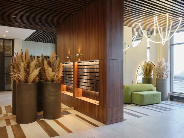 Парадные оформленные в экостиле сочетают в себе красоту и комфорт. Для Вас и ваших гостей предусмотрены мягкие зоны ожидания.