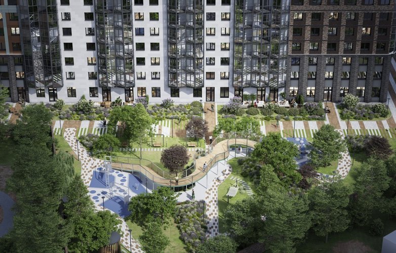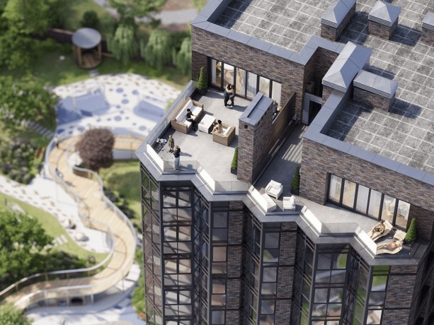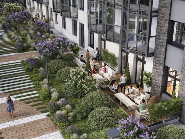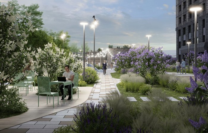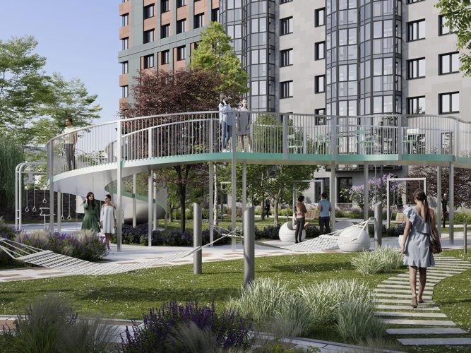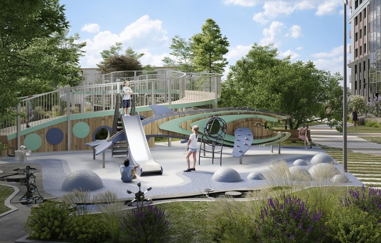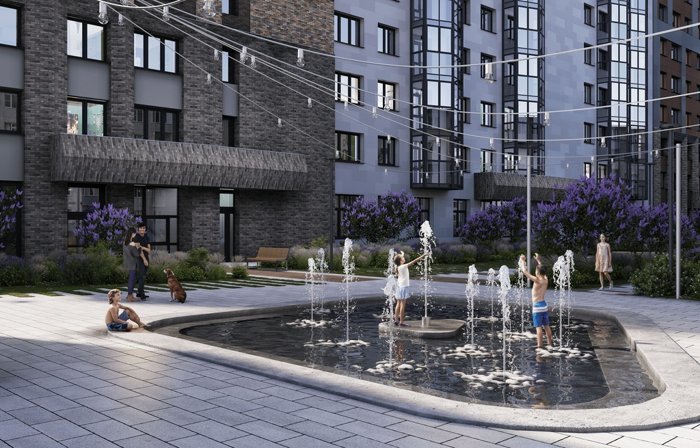 Место активного отдыха и общения с соседями. Здесь расположен амфитеатр, а фонтан станет спасением в жаркий летний день.