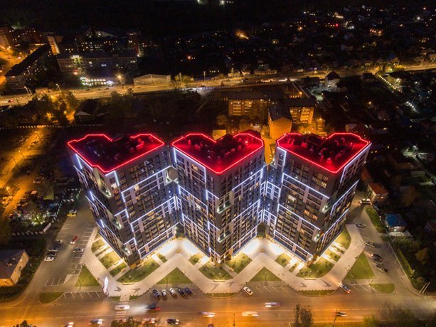 Композиционный центр жилого комплекса «Стрижи Сити» – три 18-этажные башни-сердца. Неслучайно эта архитектурная концепция реализована в одном из центральных районов Иркутска – вблизи от улиц Декабрьских Событий и Советская. Своей любовью, воплощенной в оригинальной и смелой форме, город будет встречать самолёты, идущие на посадку в расположенный неподалёку аэропорт.